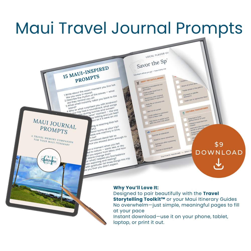 The Maui Travel Journal Prompts is a journaling companion designed to help you reflect on the moments, flavors, and feelings that made your island adventure unforgettable.